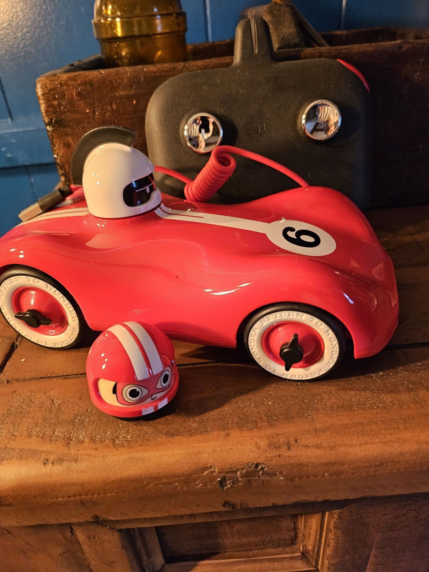 FAO Schwarz, interchangeable "MotorHead" drivers and helmets for customization, equipped with functional LED headlights and taillights, produces realistic sound effects and music during operation, includes rechargeable battery and USB-C charging cable. Cash only, pick up only. +(SCRANTON)